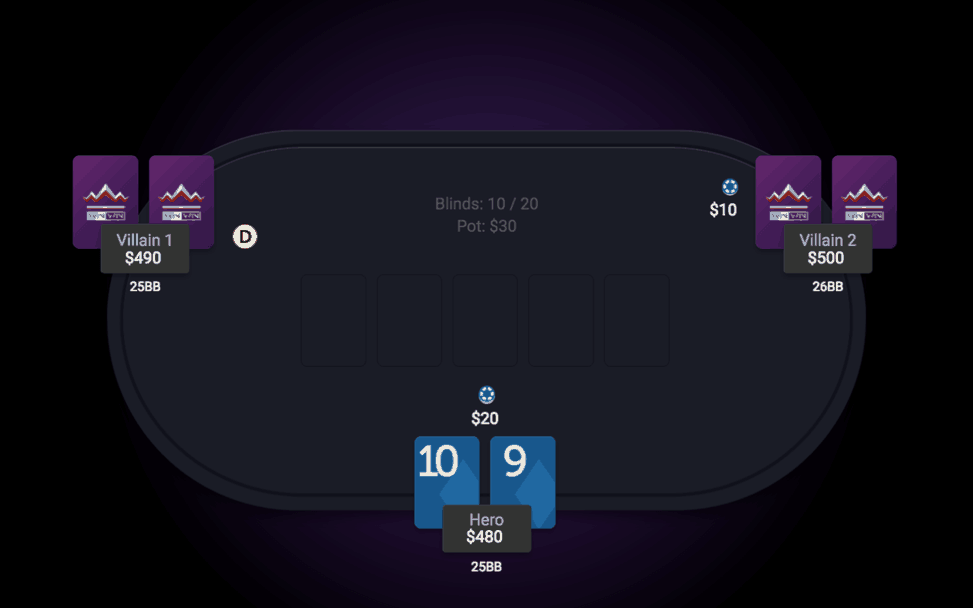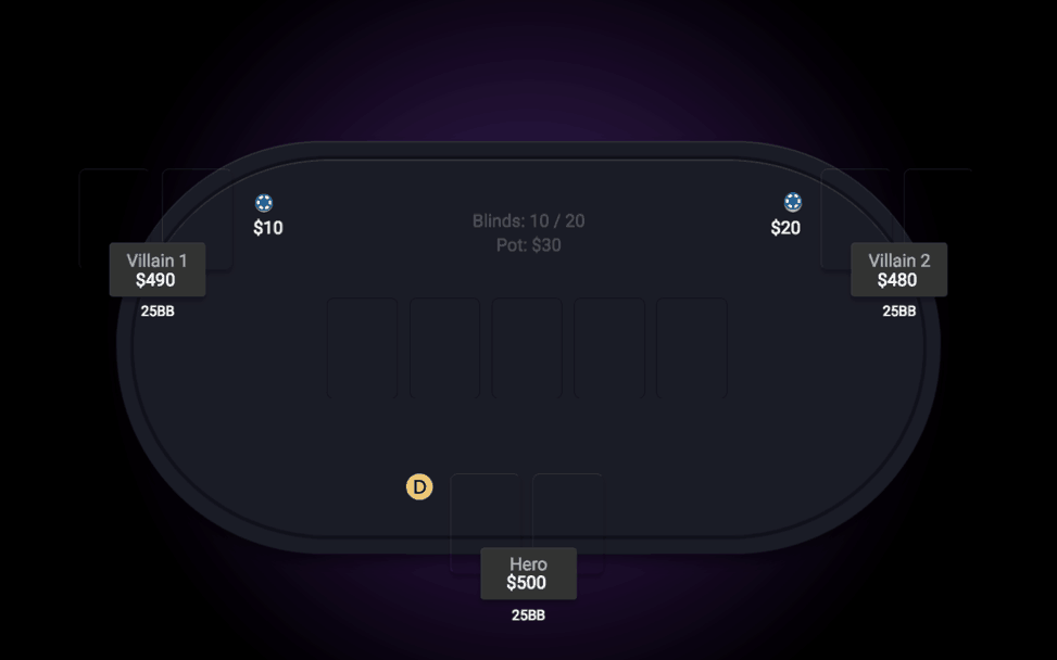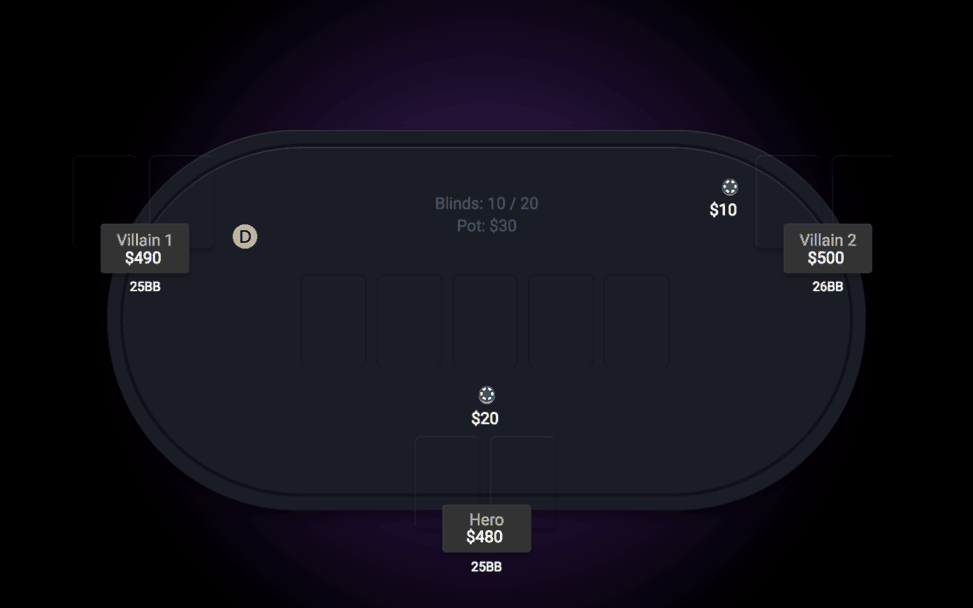 Баттон перемещается по часовой стрелке с каждой сыгранной раздачей. В следующей раздаче баттон переместится к Villain 1: