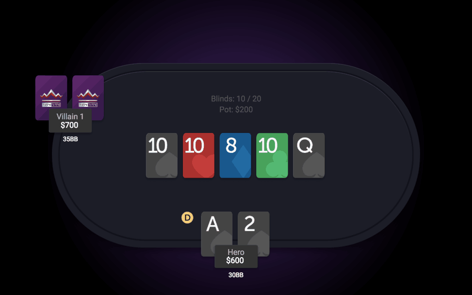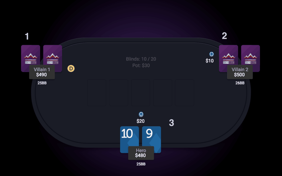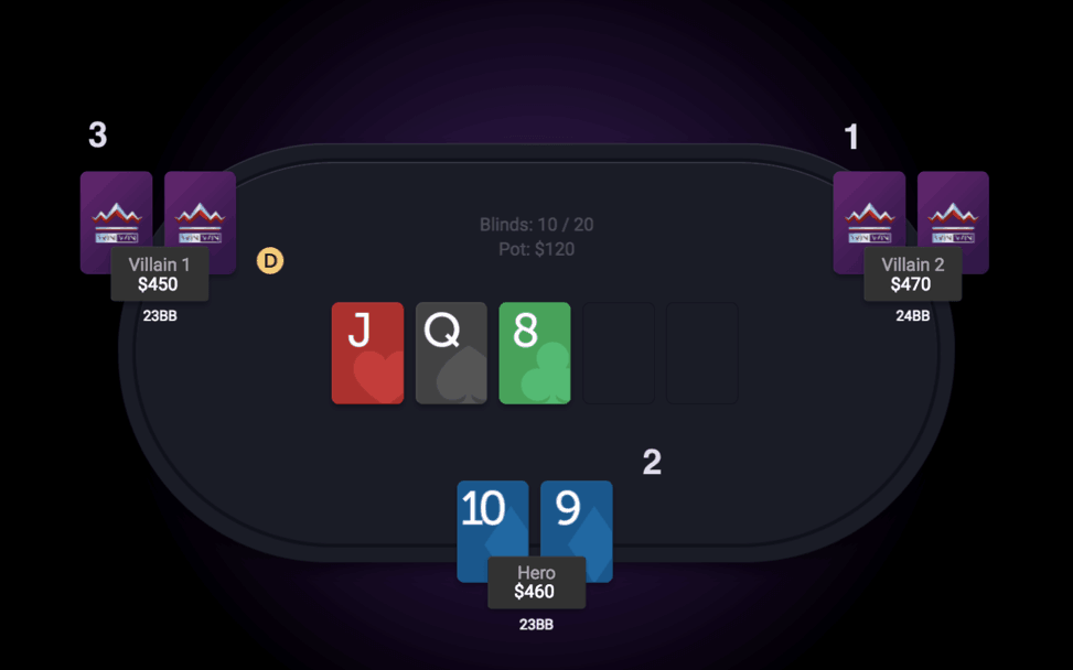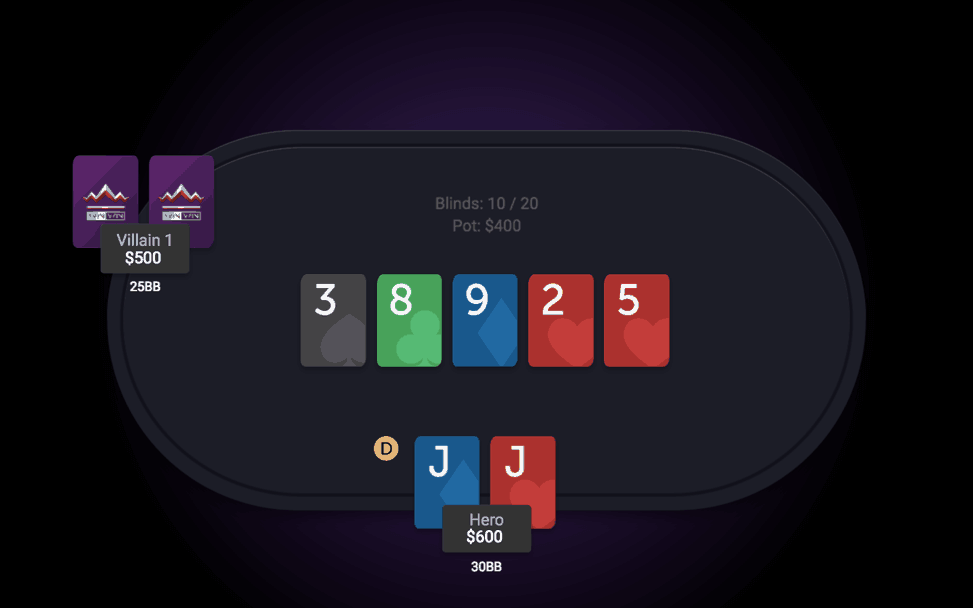 Наша комбинация здесь выглядит так: JJ895 – пара валетов. Мы задействуем обе карманные карты.