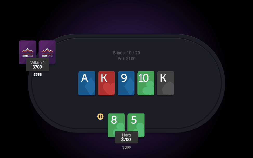 Наши карманные карты ниже карт, лежащих на доске, и поэтому готовая комбинация выглядит как AK9TKпара королей.