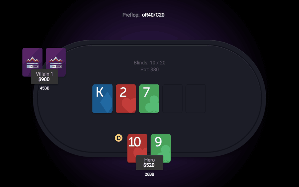 Ставка в таких случаях называется донкбет, и использовать ее мы будем довольно редко – зачастую после донкбета мы окажемся в неприятной ситуации, что может спровоцировать ошибки как на флопе, так и на поздних улицах.