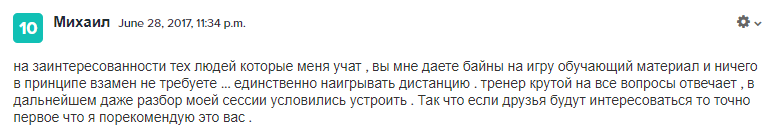 Ребята, большое спасибо вам за высокие оценки и теплые слова. Надеюсь, чтение ваших отзывов поможет начинающим игрокам сделать правильный, информированный выбор обучающего партнера.